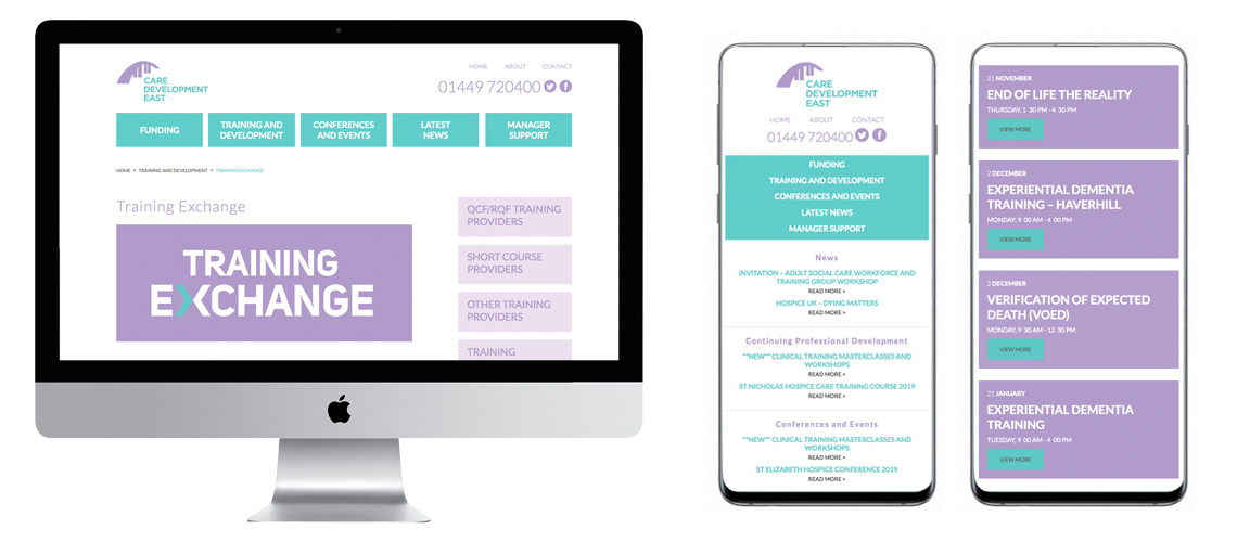 The Care Development East website was developed in WordPress giving them and their communication team total control over all content. We sourced and implemented various plug-ins to make updating the site as easy as possible and add functionality. The Training Exchange provides a dynamic list of training opportunities via a simple to use interface. The Training Provider section provides a list of all providers in the Eastern region offering RQF courses for the care sector.